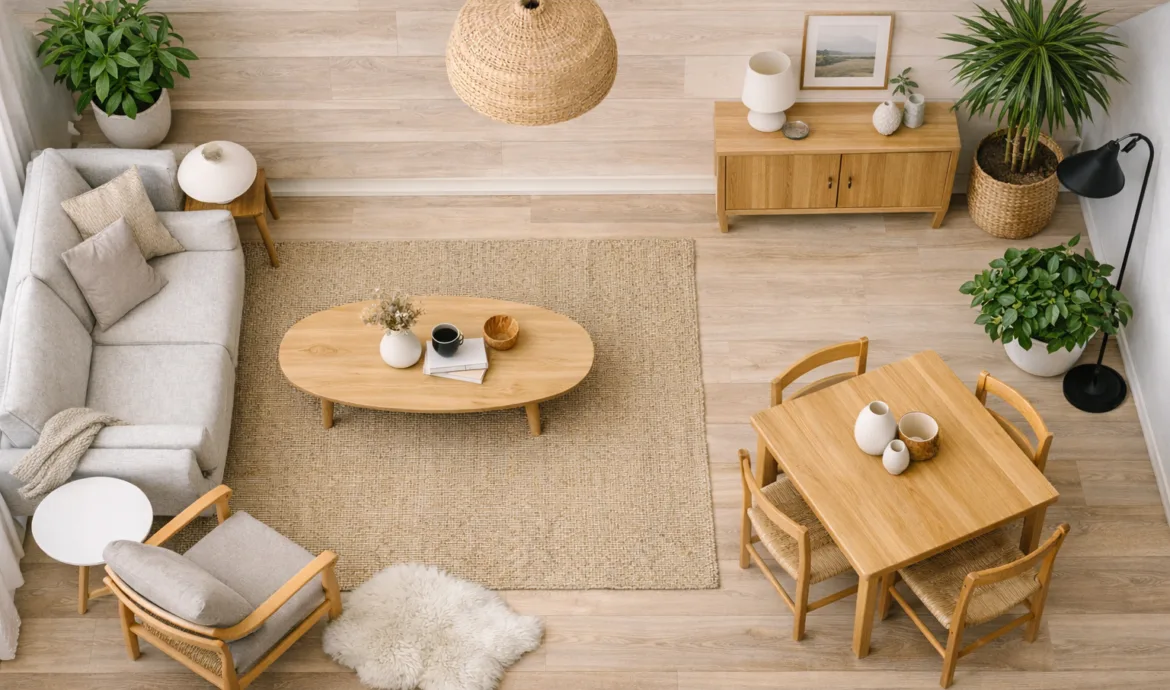Tommelfingerregel for stueplanter pr. m² i lejlighed og villa, underbygget af Stanford: nok grønt til trivsel uden at overfylde rummet.